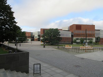 フィンランドの街並み(左)と会場のアールト大学(右)