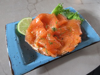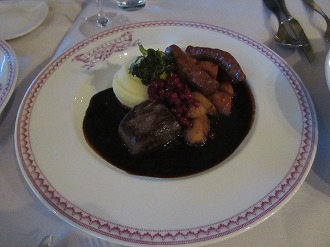 下の写真は、現地で食べたサーモンサンドウィッチとトナカイ肉のステーキです。