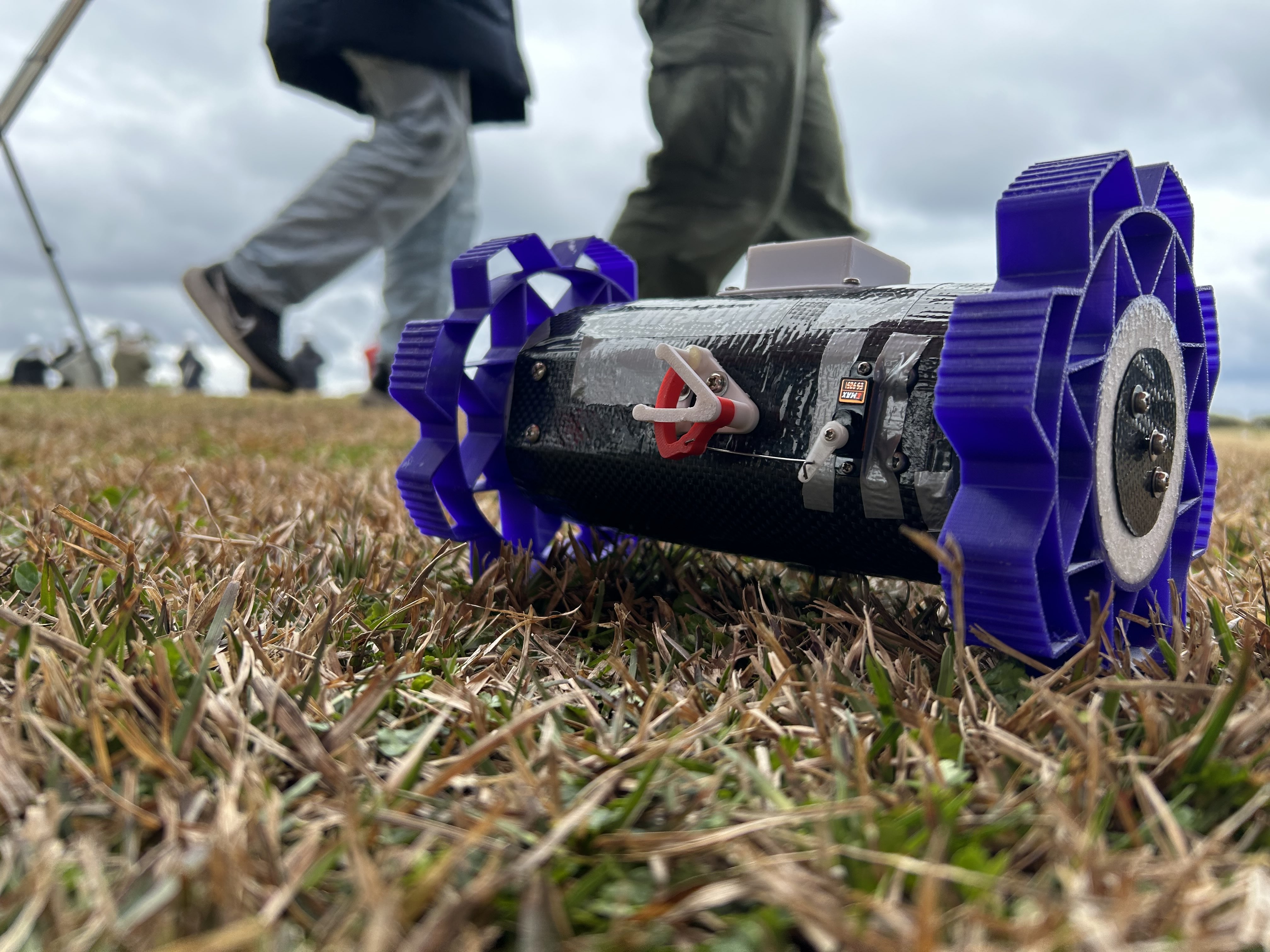 空中から投下され、GPS情報等をもとに目的地に向かい走行するモデル探査機。