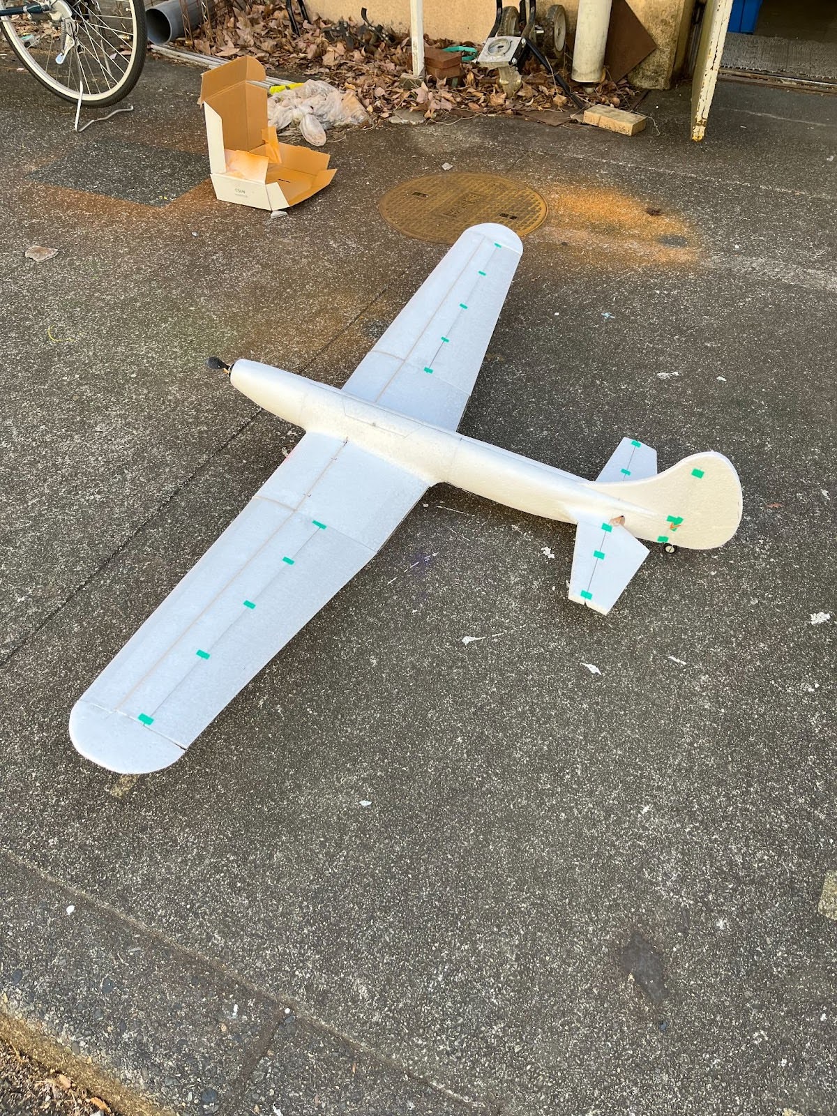モデル機では機首に武装を集中配備しているがRC機に武装なんて搭載しないので重心が後方に寄りすぎ、機首におもりを載せないと飛ばない機体となってしまった。