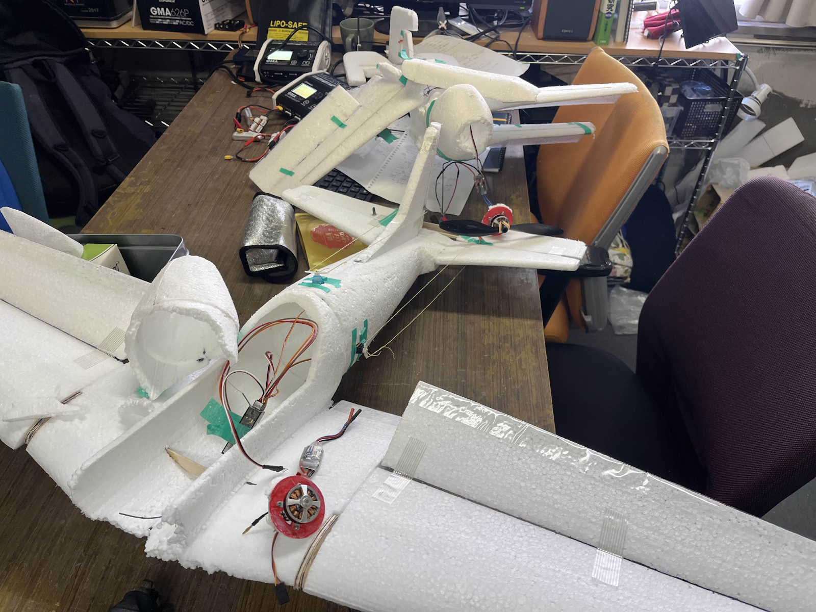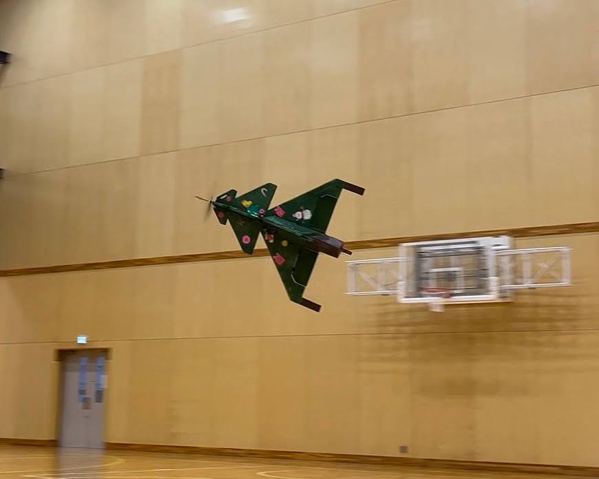 部内大会に参加した1年生チームの機体。2023年飛行ロボコンにおけるAvengerのパイロットがほぼ一人で設計、製作。改良型の2号機も計画されたが、初製作でありほぼ単独作業故に生産力が乏しく、結局1機のみが製作された。