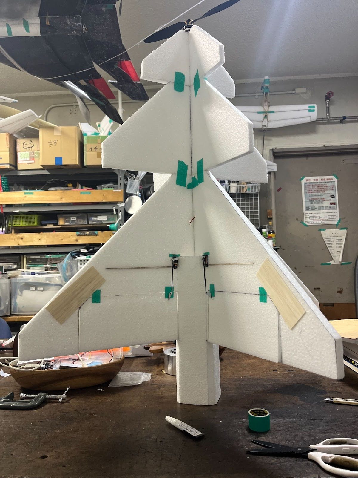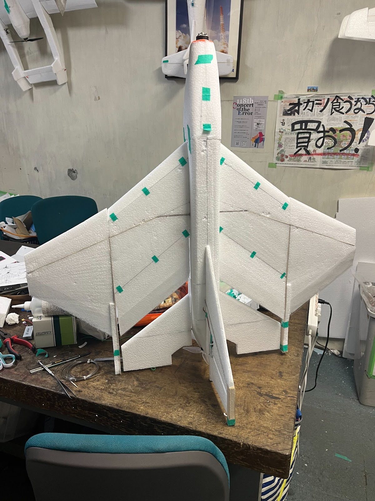 昨年度のFlyingWing2が一般部門で使えそうだったことから大会仕様に作り直した機体。(自動操縦で使う案はどこに消えた?)