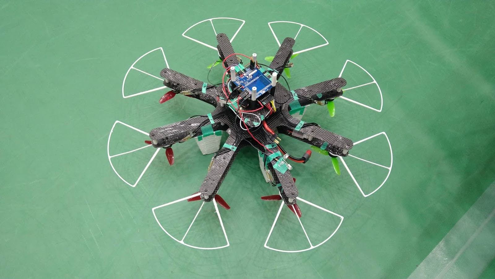 斜めに着陸した際にプロペラが床につくのを防ぐため無駄に大きくしたプロペラガードや、