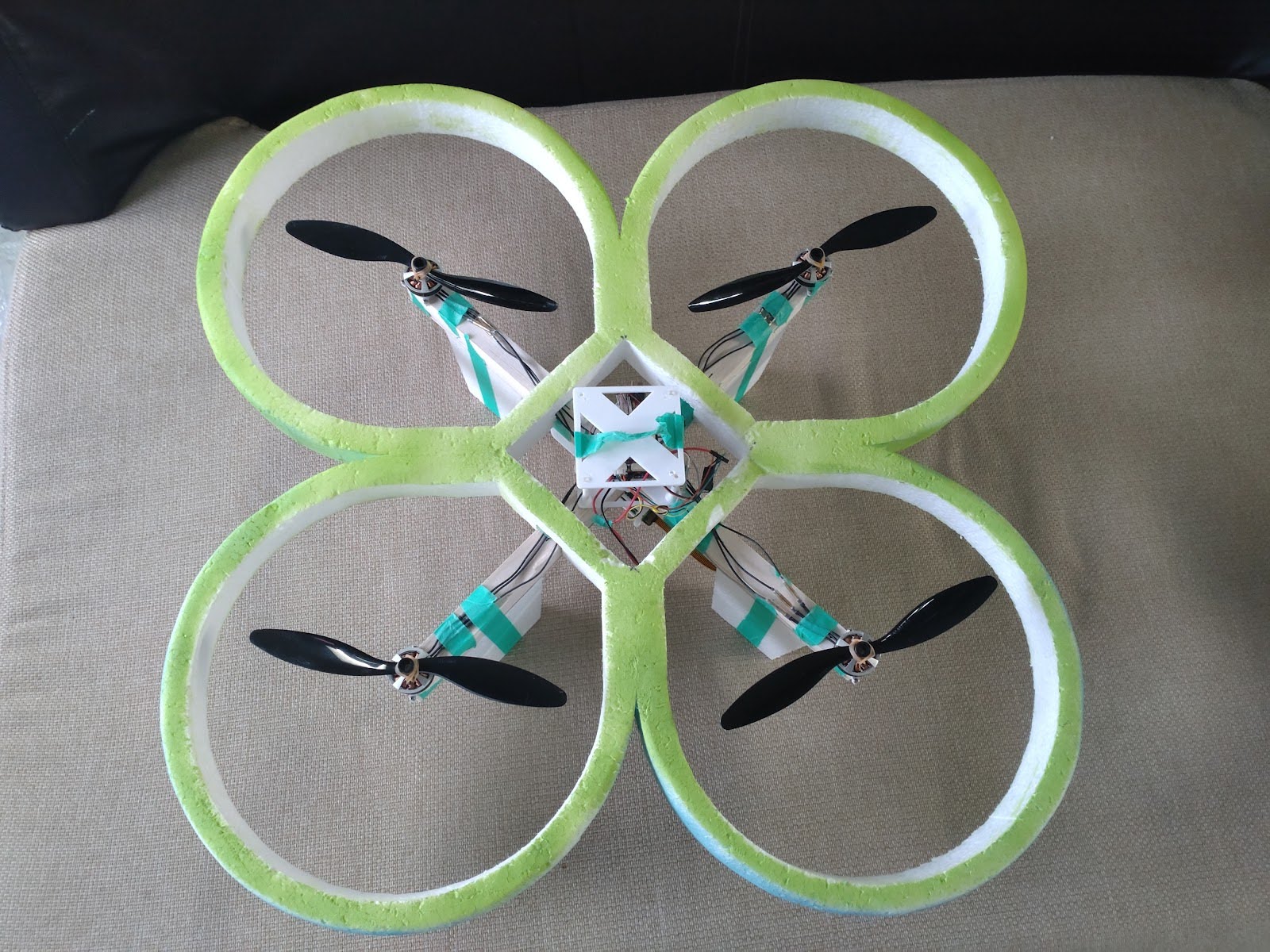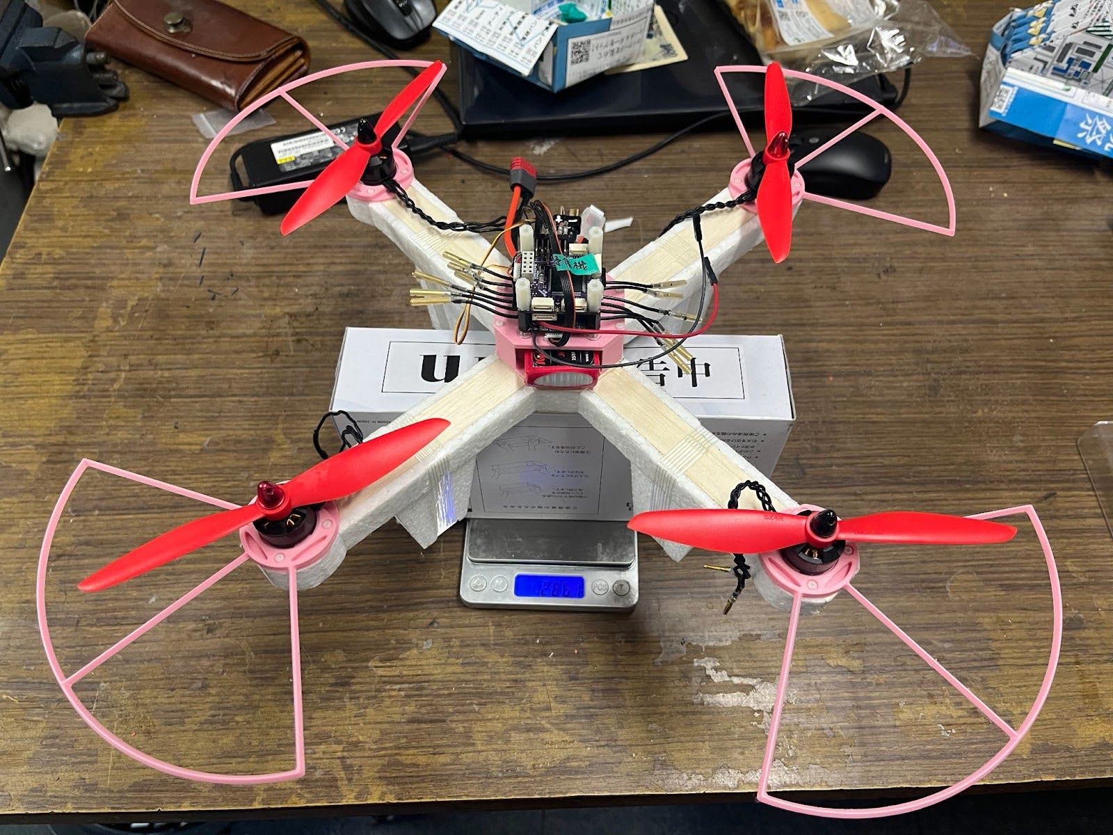 発泡マルコプMk1同様このクラスのマルチコプターとしてはとても軽量で、バッテリーの劣化防止に貢献している。