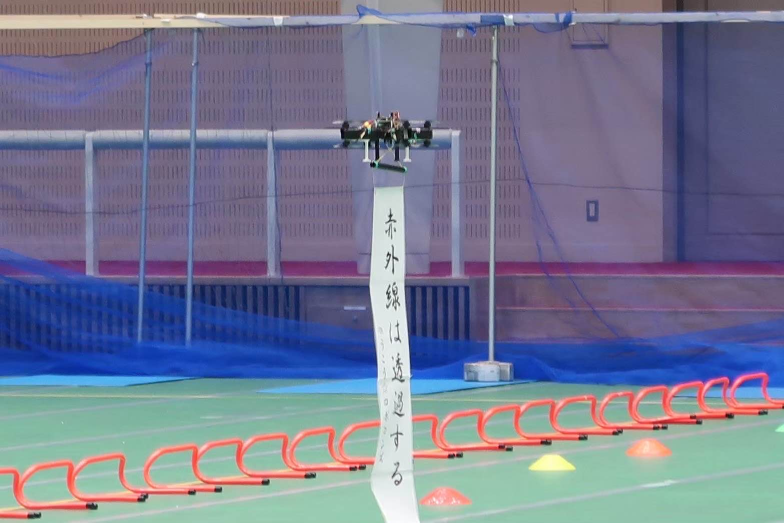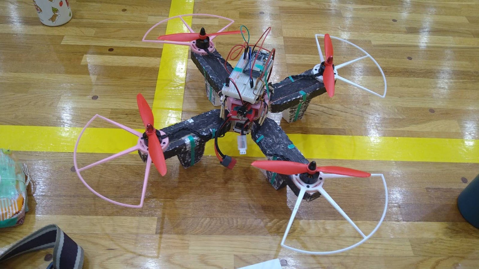 また、正解の箱を識別するために赤外線検知機能を開発していたがまだ試験中だったため、機体の上にブレッドボード(47 g)を載せた結果、