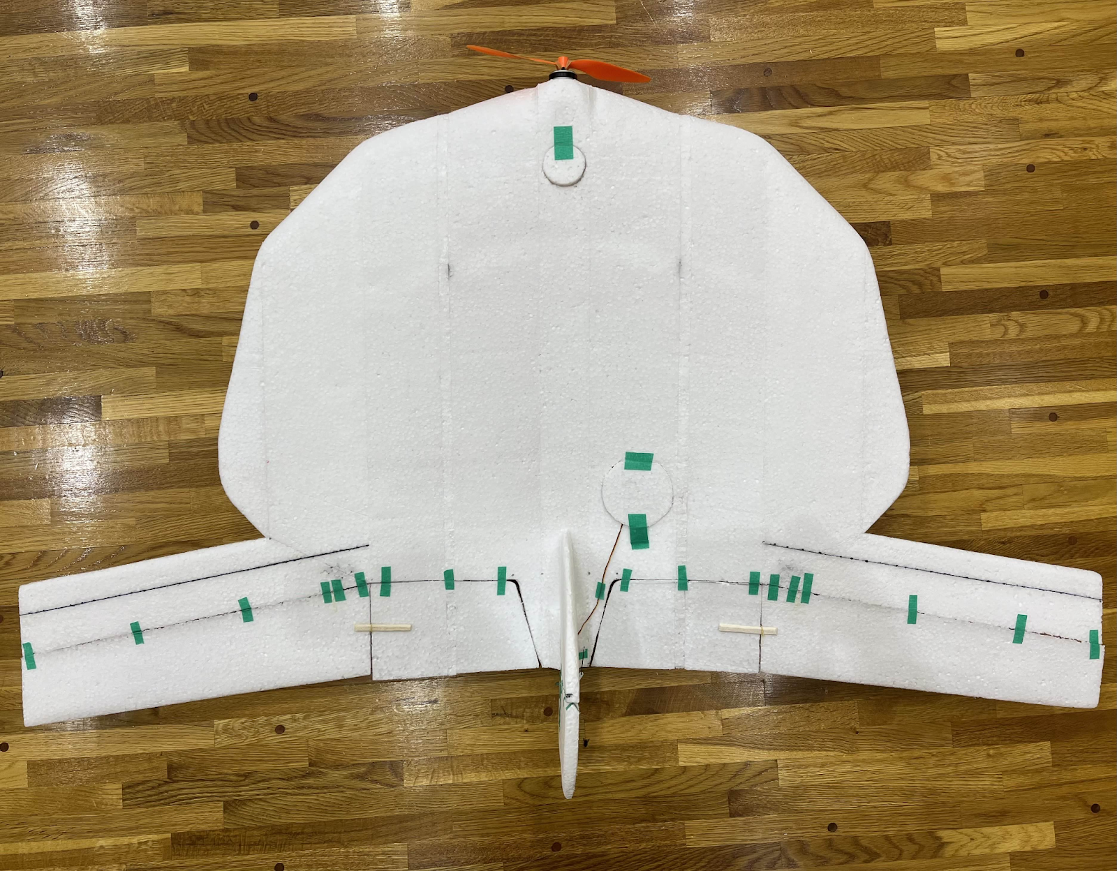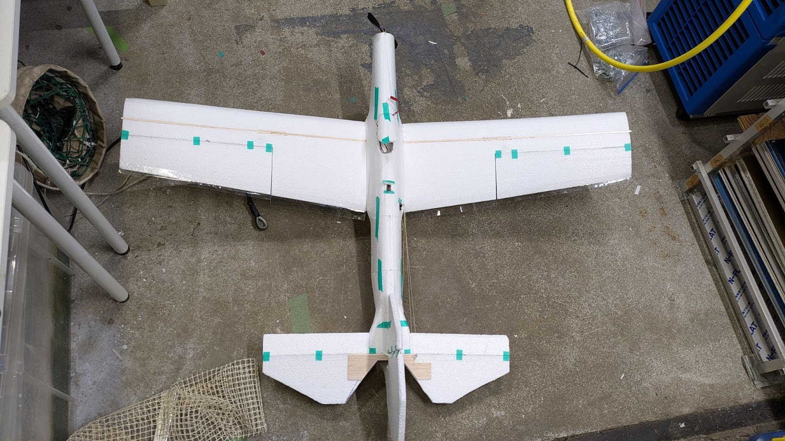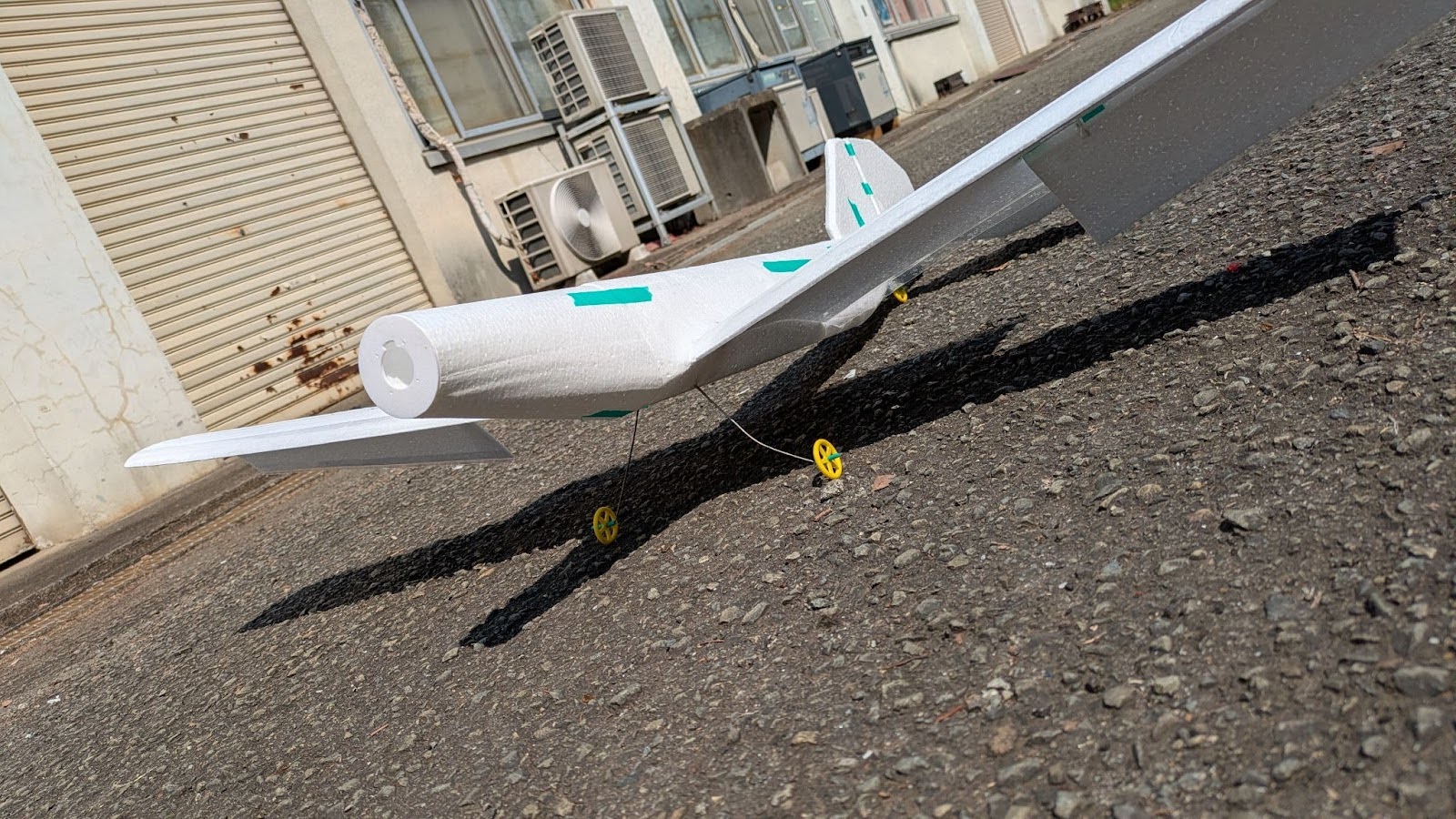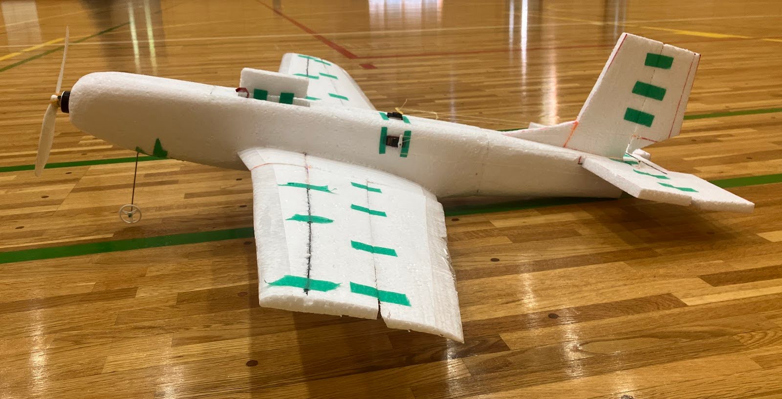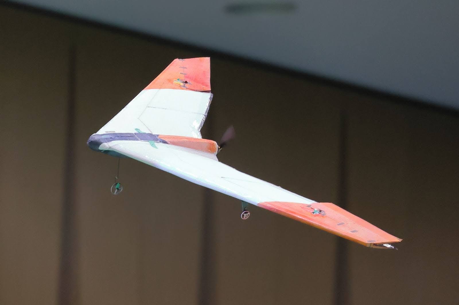 捻り下げと主翼のエレボンでそれを補うという設計になっている。また、電池をなるべく後ろに入れ、重心を後ろにした方が飛ばしやすい。