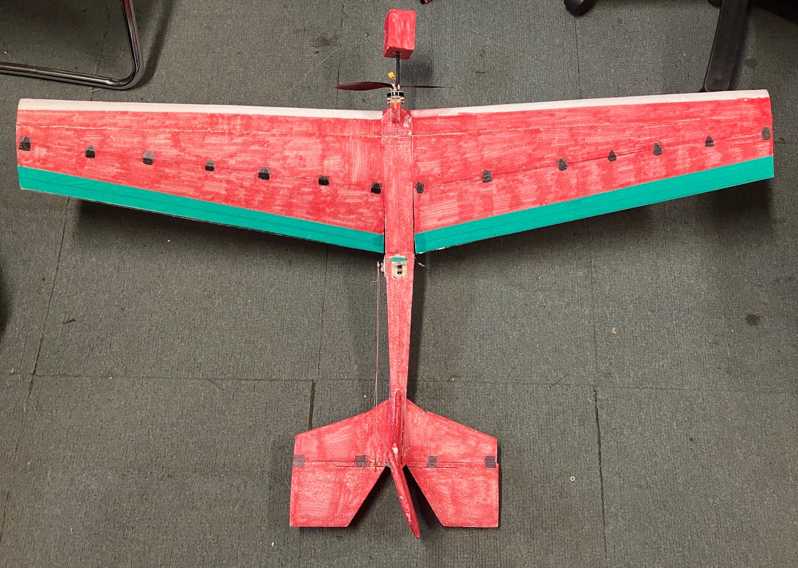 ちなみに昨年のAvengerが0.81kg/m²である。滑空性能がとにかく高く、体育館で無動力滑空26秒の記録を持つ。