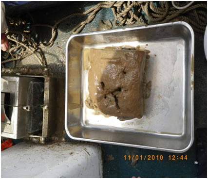 Fig.7: The sediment cake that we have taken by using Eckman Dredge. |