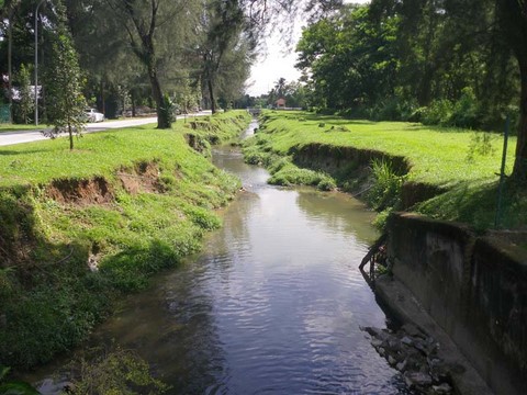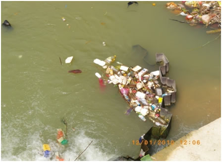 Fig.8: One of our sampling locations which located near to the human populated area (rubbish trap have been built here but rubbish still can go out through it due to the overloaded of rubbish trap) |