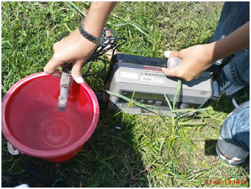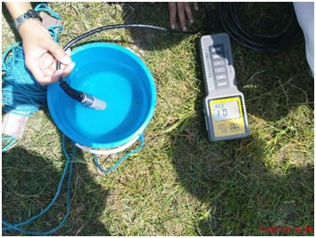 | One of student is collecting water sample in lake to measure in-situ parameter |