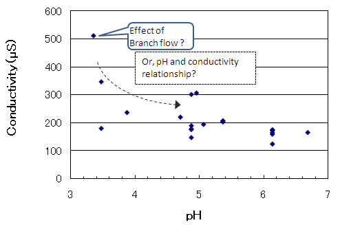 | Fig.13: Relationship between pH and conductivity in water samples |