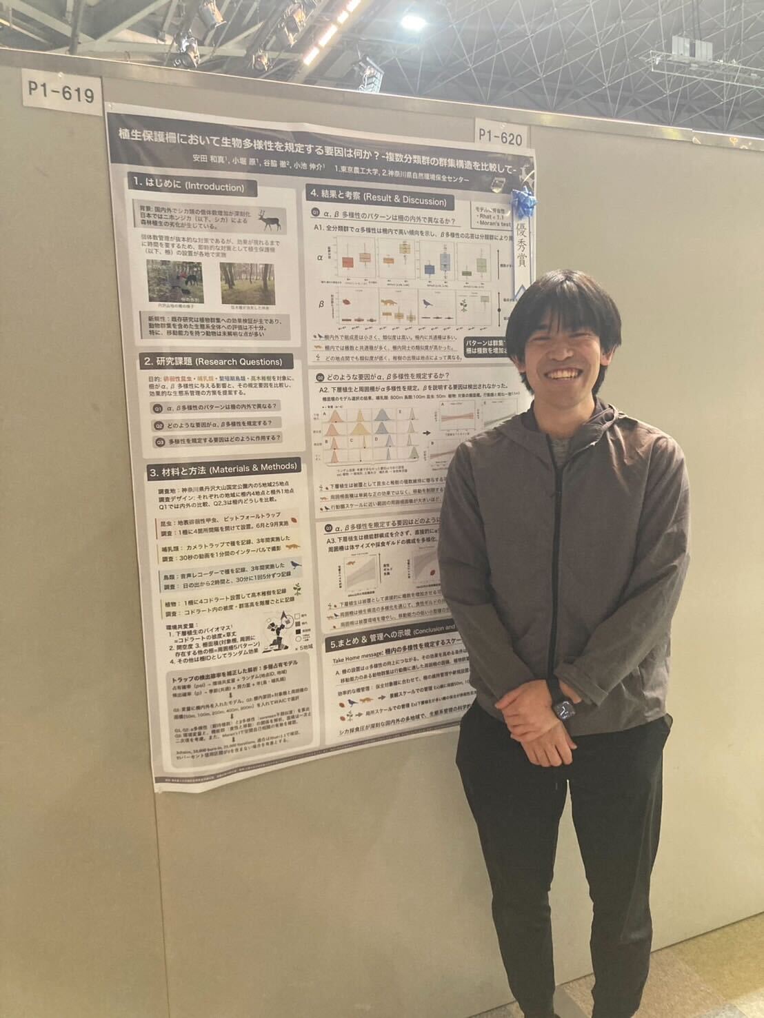 - 安田和真・小堀 原・谷脇 徹・小池伸介(2026)第73回日本生態学会大会 ポスター賞優秀賞 生態系管理・生態学教育・普及 分野 “植生保護柵において生物多様性を規定する要因は何か?複数分類群の群集構造を比較して”.
