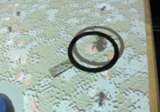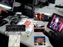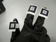 さらに,マーカーをつけた手袋で特定の写真を指定して,それを同じくマーカーが付いたデジタルフォトフレームに重ねると(ドラッグ&ドロップ)そこに写真を表示することが出来ます.この操作はマーカー同士の位置関係で認識しています.