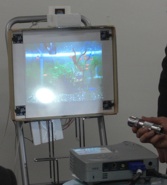 (プロジェクタ+カメラ) (水たまりや障害物が動的に投影されて出現) (Android携帯に実装)