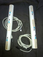 本テーマでは,プレイを通じて他者とのコミュニケーションを深めることができるようなゲーム用入力インタフェースの開発を目指しました.特に,音感リズムゲームと呼ばれるジャンルを対象としました.具体的には,1)ゲーム中に声を掛け合うなど,協力あるいは共同でタスクをこなさなければならない要素を導入することで「協調性」を発揮できるようにすること,2)協力あるいは共同でタスクをこなすことで達成感や難易の感想を共有することで,ゲーム後のコミュニケーションを活性化するようにすること,をポイントとしました.右図にあるような筒状のデバイスにはそれぞれ3カ所に「握り」を検知するセンサを取り付けてあり,どこを握っているかを把握することができます.画面に出される指示に従い2人のプレイヤが棒を握ります.