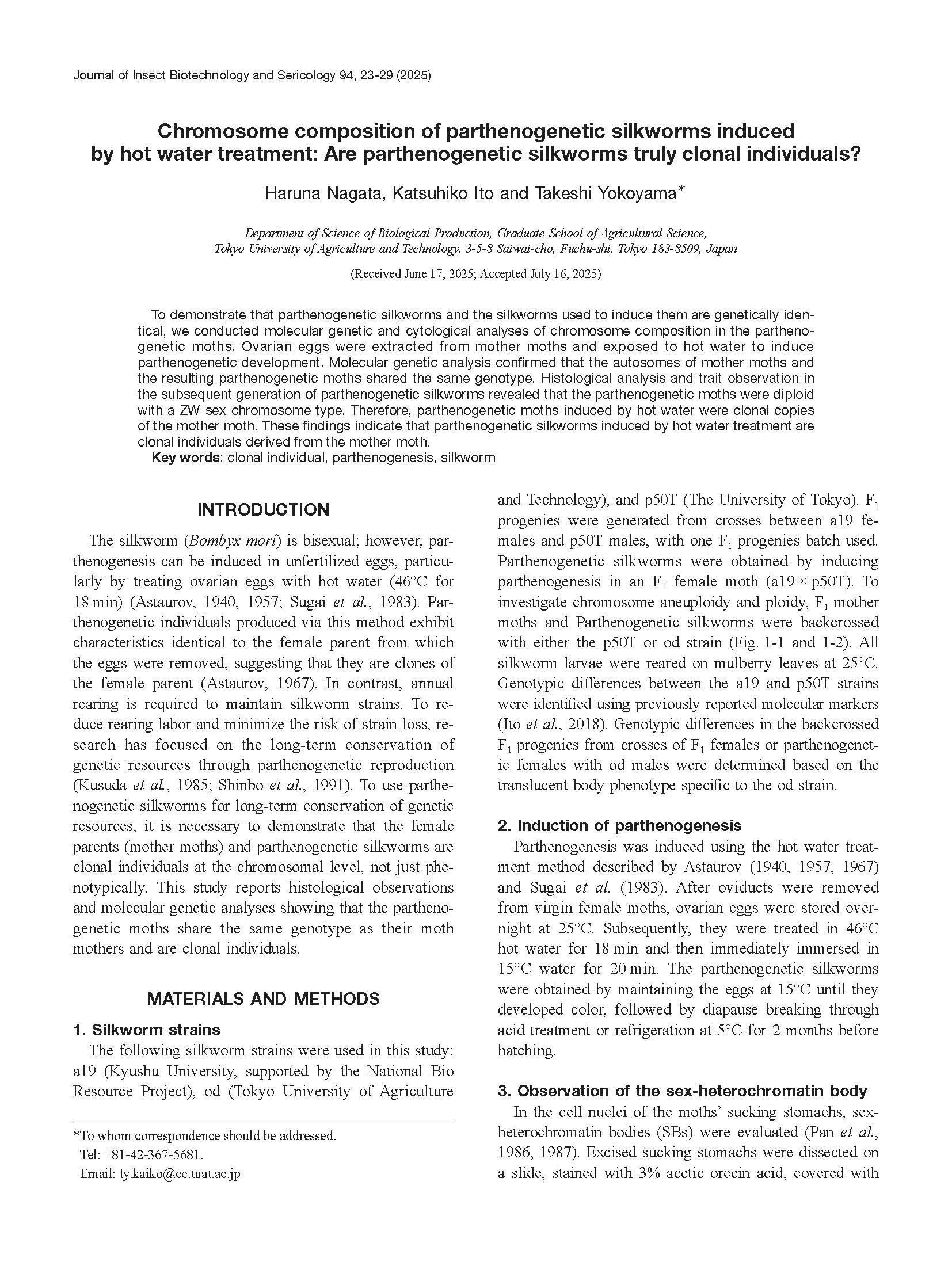 Journal of INSECT BIOTECHNOLOGY and SERICOLOGY |