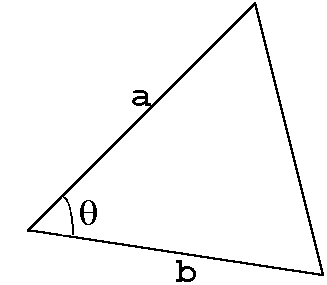 2辺a, bとその挟角θ(単位ラジアンで0<θ<π)とで構成される三角形