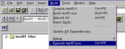 コンパイルとリンクが成功すると、test01.exeという実行ファイルが作成されます。
