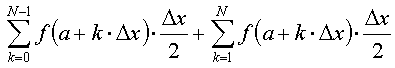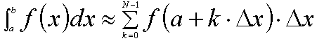 (参考:関数f(x)をa≦x≦bの範囲で区分求積する場合は以下の通りになります。積分区間をN等分し、Δx=(b-a)/Nと与えます。分点をa,a+Δx,a+2・Δx,・・・,a+(N-1)・Δxとします。その結果、積分値を