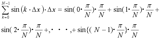 forループ内にて変数kの値を0からN-1まで一つづつ増加させ、区分求積法により、