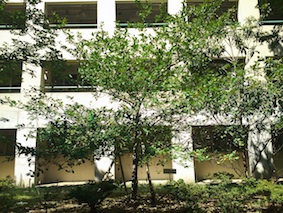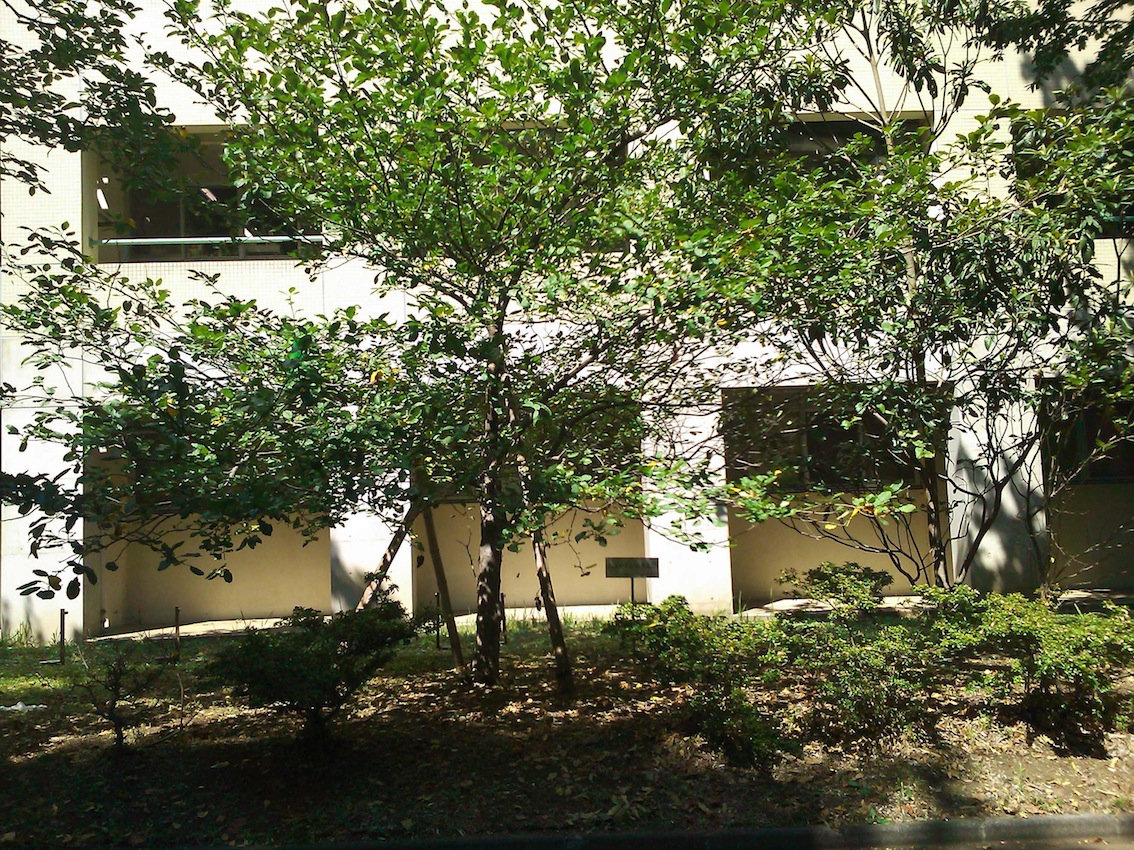 このニュートンのリンゴの木は、物理システム工学科の入っている4号館の南側に植えられています。