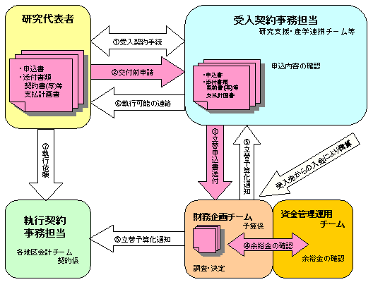 ■【公的機関からの受託事業等の資金交付前使用に係る予算立替の流れ】