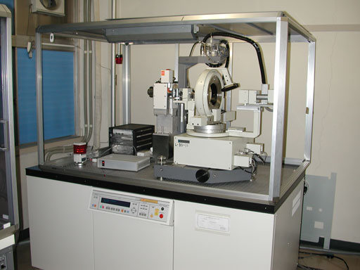 (1)X線発生部:回転対陰極型(対陰極 Cu or Mo)、最大定格出力 60 kV 200 mA、X線検出部 シンチレーションカウンター。電子計算機:Silicon Graphics IRIS INDIGO ENTRY (主記憶容量 16 MB、磁気ディスク 1425 MB) (2)X線発生部:封入管型(対陰極 Cu)、最大定格出力 40 kV 50 mA。X線検出部:シンチレーションカウンター、粉末回折用ゴニオメーター、反射法小角散乱用ゴニオメーター