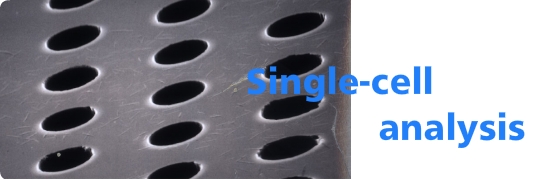 Micro-Total-Analysis System、Lab-On-A-Chipと呼ばれる微細加工技術を利用した分析システムの開発が盛んに行われています。当研究室では、DNAチップを用いた生物種の新規判別方法の開発、遺伝子解析用マイクロデバイスの作製を行っています。