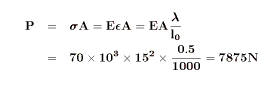 一辺 15mm の正方形断面を持ち、長さが 1mm のアルミの角棒を引張ったところ、 0.5mm 伸びた。この棒のヤング率 E=70GPa とした時、この棒に加えられている荷重はいくらか?