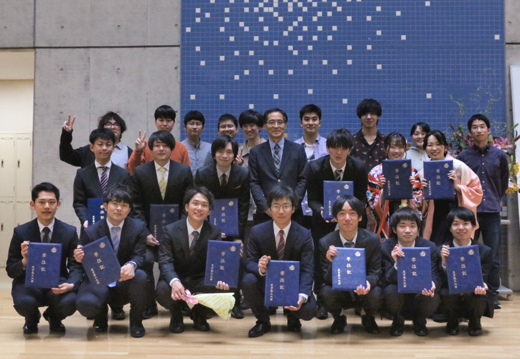 | 3月24日 | 工学部・工学府の卒業式・修了式が「府中の森芸術劇場」にて行われました。D2 吉永さんが博士後期課程を修了されました。M2 天野さん、伊藤さん、内野さん、木村さん、鈴木さん、船越さん、佐藤さん(平野研)は、4月から社会人になられます。![]() |