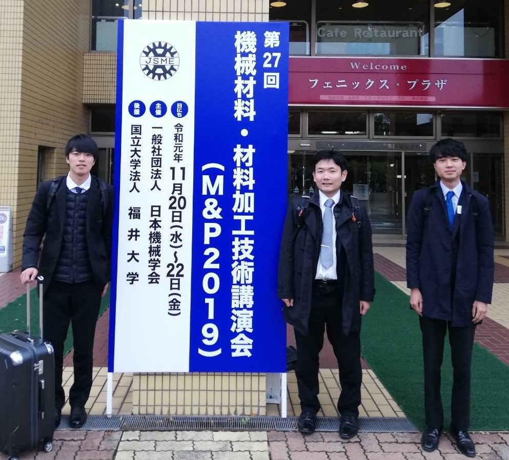 | 11月20日-22日 | 福井市のフェニックス・プラザで開催された日本機械学会主催の第27回機械材料・材料加工技術講演会(M&P2019)において、D1 五十嵐さんが発表しました。![]() |