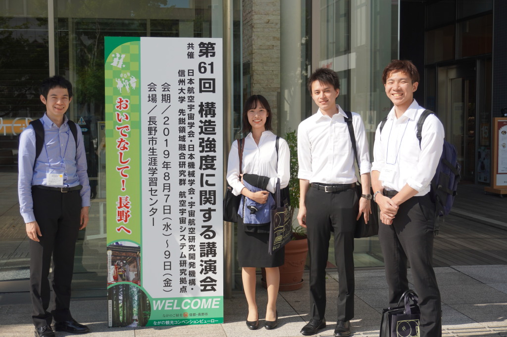長野県長野市で開催された日本航空宇宙学会主催の第61回構造強度に関する講演会において、D3 大島さん、M2 青木さん、五十嵐さん、峯岸さんが発表しました。![]() |