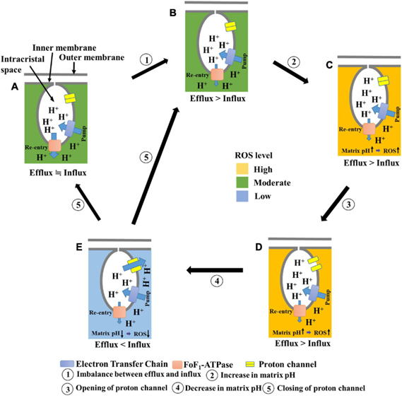 B) ミトコンドリアが一時的に脱分極する仕組み (Aklima et al., 2021)
