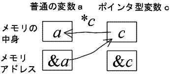 int a,*c; /* a:普通の変数、c:ポインタ型の変数 の宣言*/