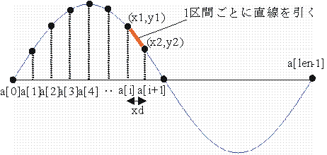 xd=(Wxmax-Wxmin)/(len-1); /* x方向の刻み幅*/