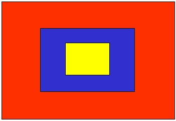 | 演習問題 13-2 画面上に次のような長方形の模様を描いてみてください(長方形の位置や色は適当に工夫すること)。