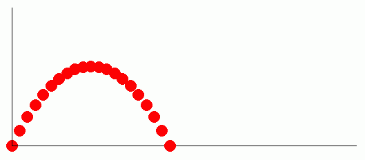 以上の計算式に従って、ボールの放物運動軌跡を描くアニメーションプログラムを、どのように作ればよいか考えます。