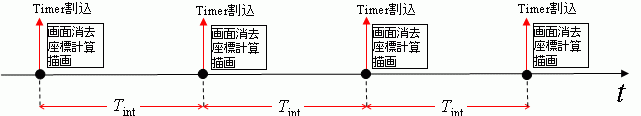 APIの一つ)は、WINDOWS OSの管理のもとに動作するプログラムです。WINDOWS OSは、外部からのイベントを受け付けて動作するイベント駆動型プログラム(補足説明を参照)によって、複数のプログラムが互いに干渉することなく並列動作する仕組みを実現しています。あるプログラムでイベント(キーボード、マウス、タイマーなどによるイベント)が発生したとします。この時、並列に走っている他のプログラムを中断して、発生したイベントを優先して受け付ける処理を割り込み処理と言います。その中で、タイマー(時計)によって発生する割り込みを、タイマー割り込みといいます。アニメーションプログラムは、このWINDOWSが用意しているタイマー割り込みルーチンを使います。