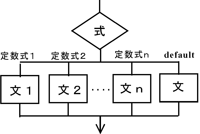 は変数の値を判断し、変数の値が定数1なら文1、定数2なら 文2、それ以外なら文3を実行する約束で使います。