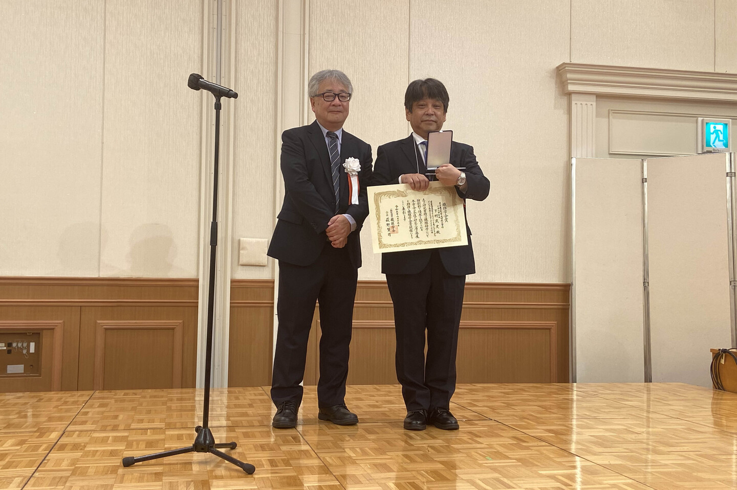 | 2023.6.15 | 繊維学会賞をいただきました。写真は会長の荻野先生とのツーショットです。