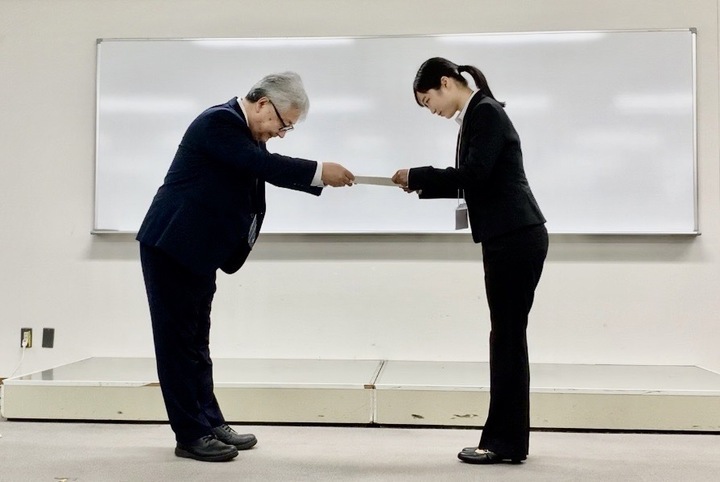 五百川くんが卒論優秀発表賞を受賞しました。