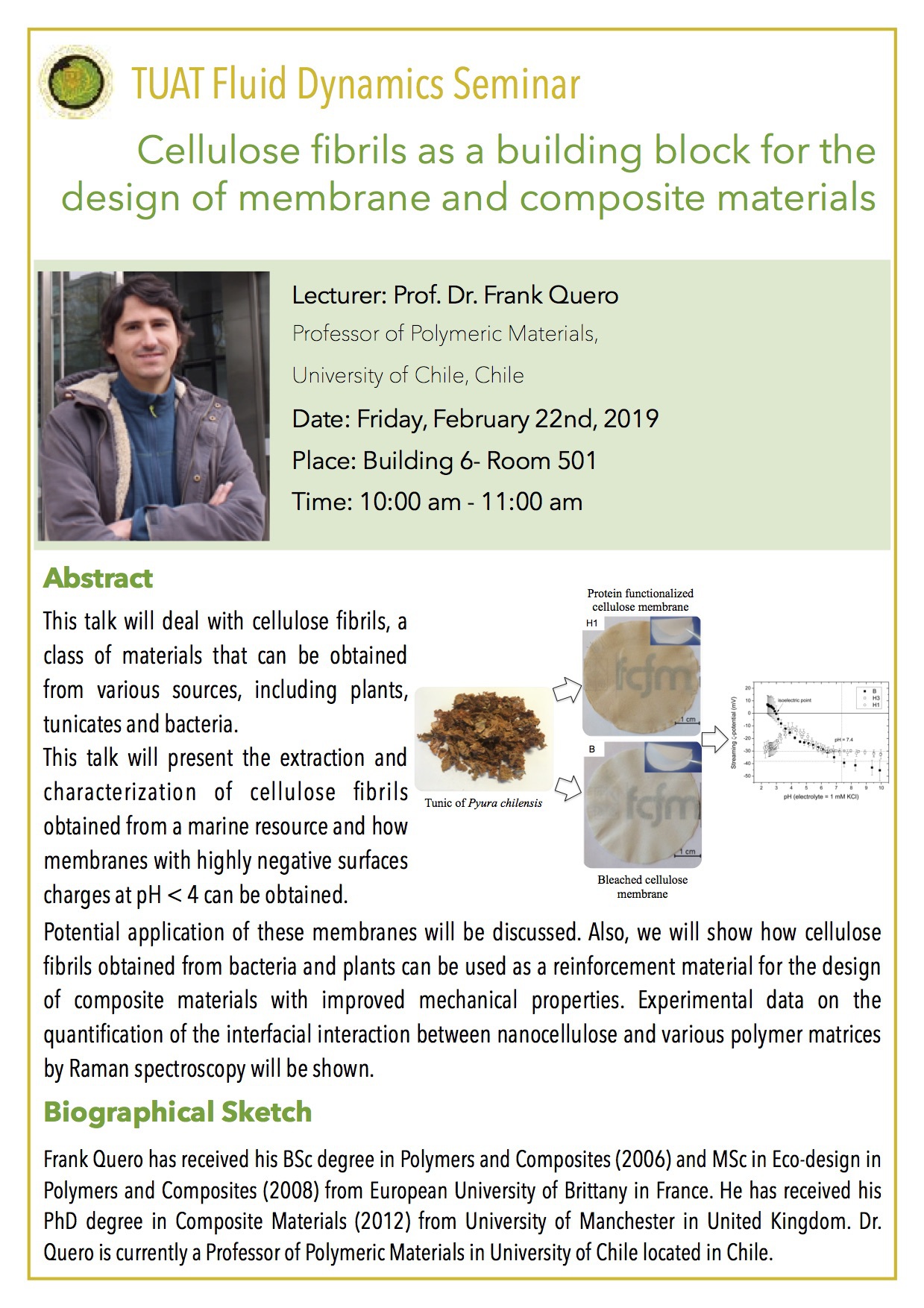 This talk will deal with cellulose fibrils, a class of materials that can be obtained from various sources, including plants, tunicates and bacteria. This talk will present the extraction and characterization of cellulose fibrils obtained from a marine resource and how membranes with highly negative surfaces charges at pH < 4 can be obtained. Potential application of these membranes will be discussed. Also, we will show how cellulose fibrils obtained from bacteria and plants can be used as a reinforcement material for the design of composite materials with improved mechanical properties. Experimental data on the quantification of the interfacial interaction between nanocellulose and various polymer matrices by Raman spectroscopy will be shown.