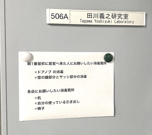 当研究室では,本学の感染症対策のガイドラインを基本とし,早くから様々な対策を行っています.