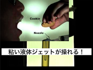 下の「粘い液体ジェットが操れる」という画像は,流体の原理の解明がものづくりにつながっている一例です.ものづくりについては次の項目で記しますが,流体実験のその先にものづくりが待っているのです.