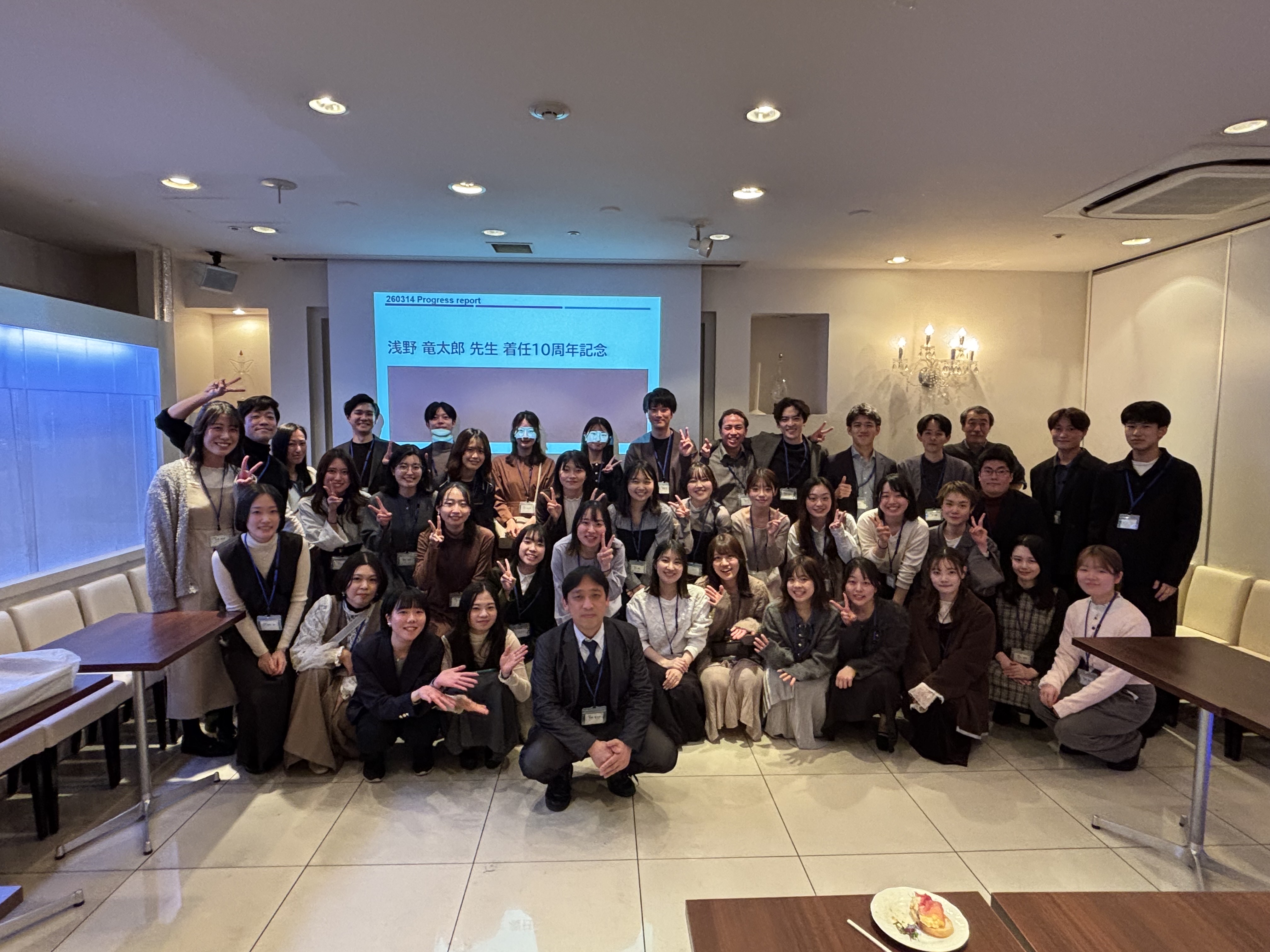浅野研設立10周年をお祝いする記念パーティーが開催されました。OBOGの方にもたくさんご参加いただき、盛大にお祝いしました!現役生代表として10期生から浅野先生のフィギュアが送られました!