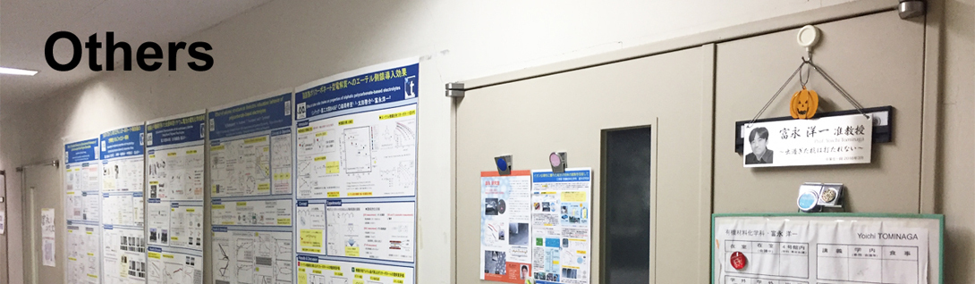 富永研では、固体高分子電解質 (SPE) の基礎と応用に関する研究を中心に活動しています。新規ポリマーの合成、物性向上技術の開発、電気化学的測定・解析・評価、ポリマー型新電池(Li-ion電池・フレキシブル電池・Mg電池など)への展開など、SPEに関わる研究は何でも行っています。SPEは、電池への応用だけにはとどまらない様々な可能性を持った材料です。さらに、新しい高分子複合体や高分子ブレンドなどをベースとした組織工学材料や生分解性材料への応用研究も行っています。研究内容の詳細については、研究概要や研究テーマ紹介を参考にして下さい。富永研究室には、毎年10名~15名の学部生や大学院生が在籍しています。研究室が掲げる教育・研究方針のもとで、自由に、楽しく、ときに厳しく、そして粘り強く研究に励んでいます。