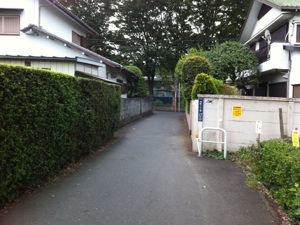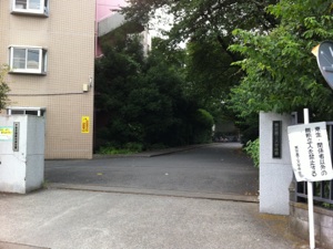 電車でお越しの場合 (土日、東門が閉鎖されていますので、隣接する寮の敷地を通って入ります)