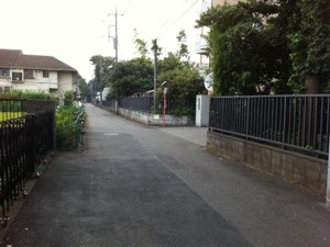 ② 突き当たったら左に曲がり(写真2)、30m先の右手にある「欅寮」の門を入ります(写真3)。