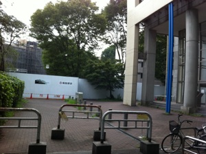 写真5 BASE棟脇 工事中の塀に沿って右に曲がります
