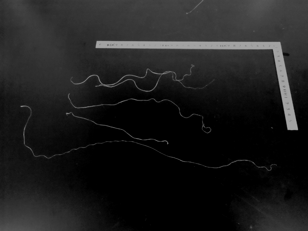 7.液から取り出し、腺を引き延ばす。